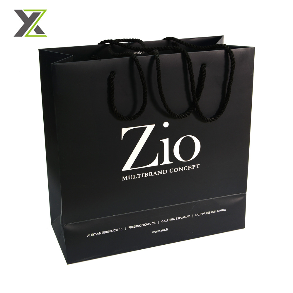 High Quality Black Luxury Shopping paper Bag for Clothes with long handle rope
