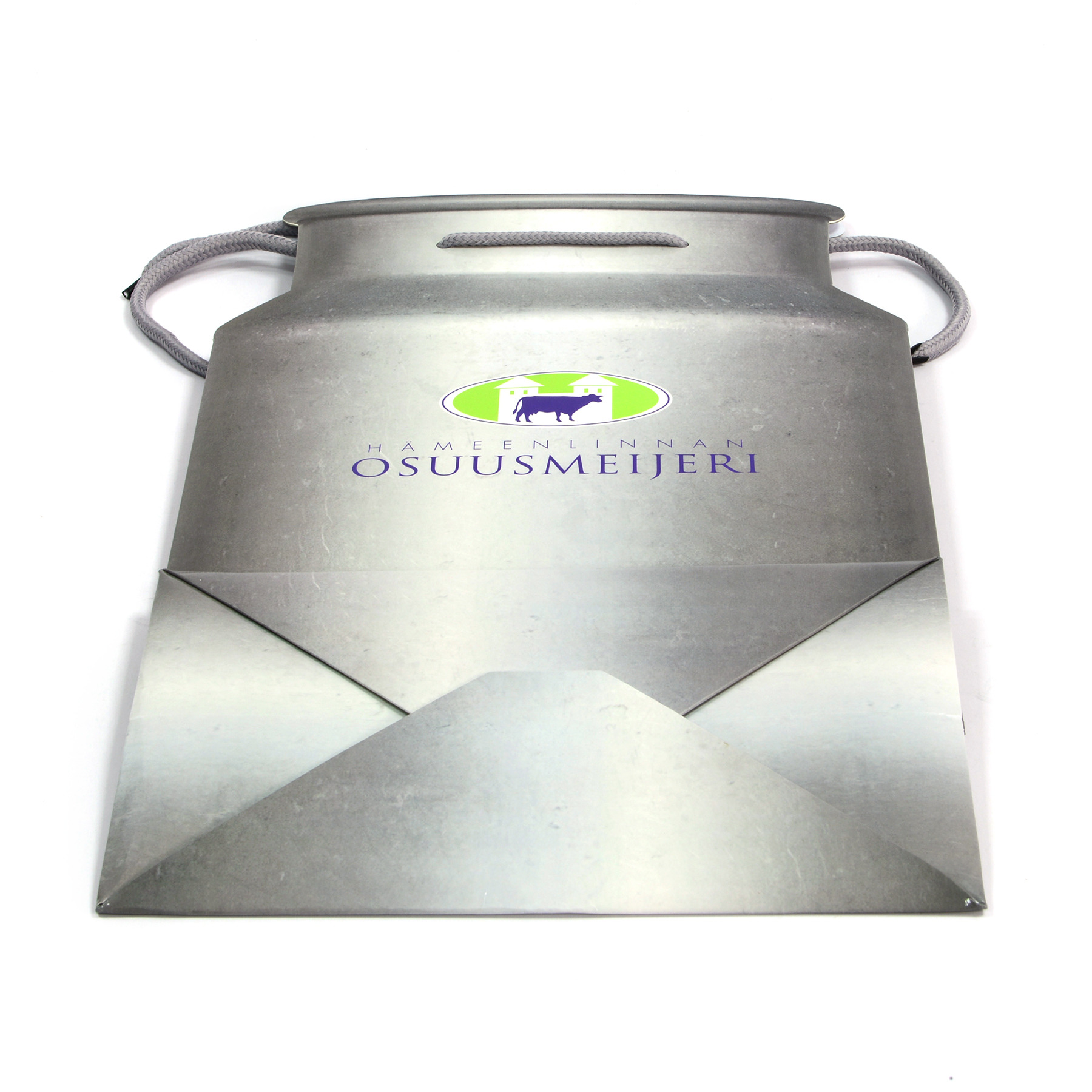 Custom unique die cut milk bottle shape paper bags with PP rope