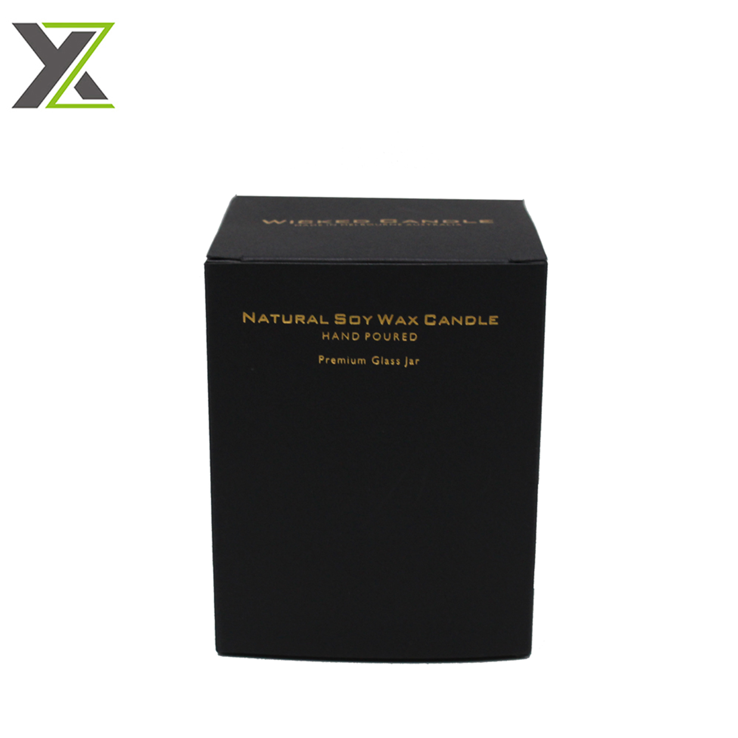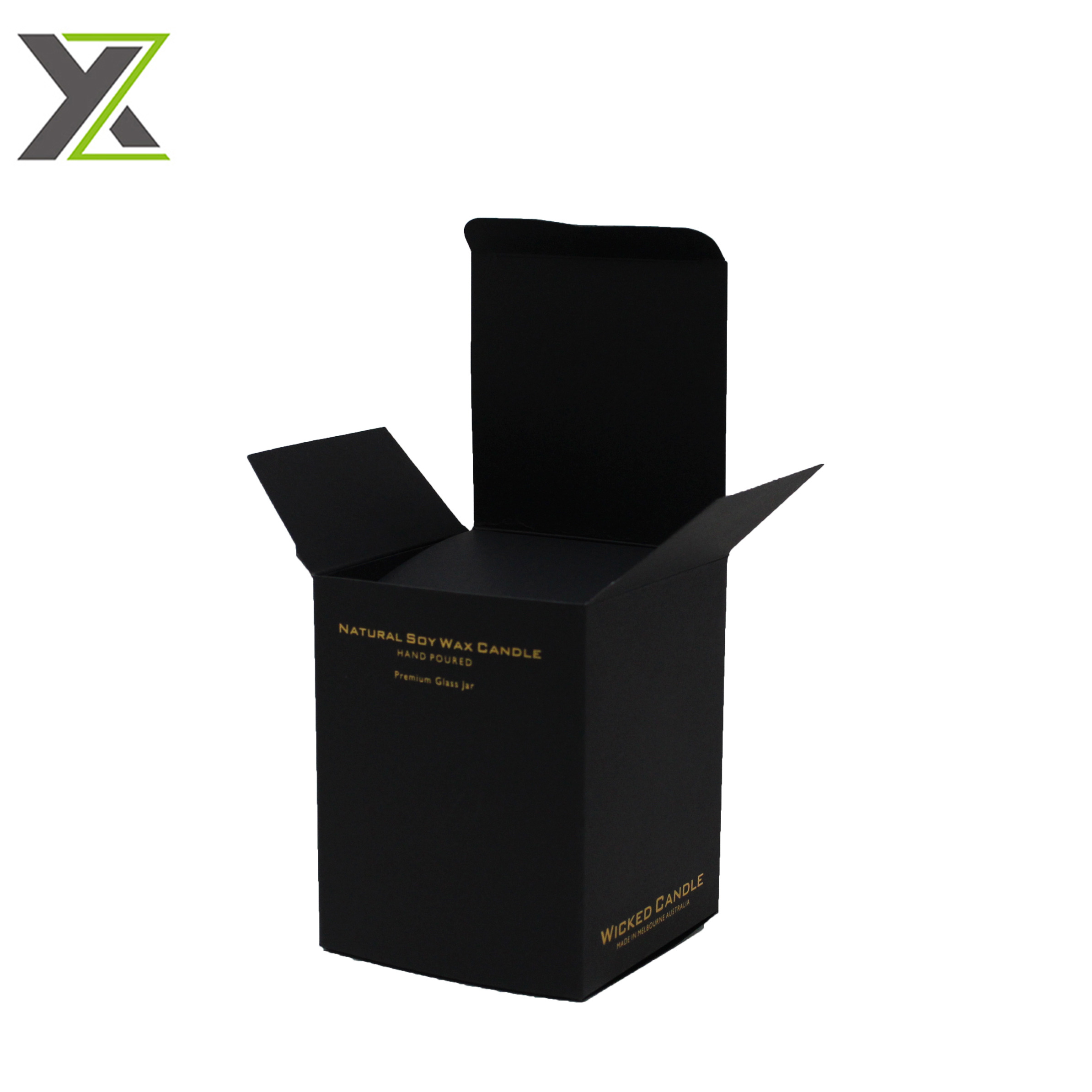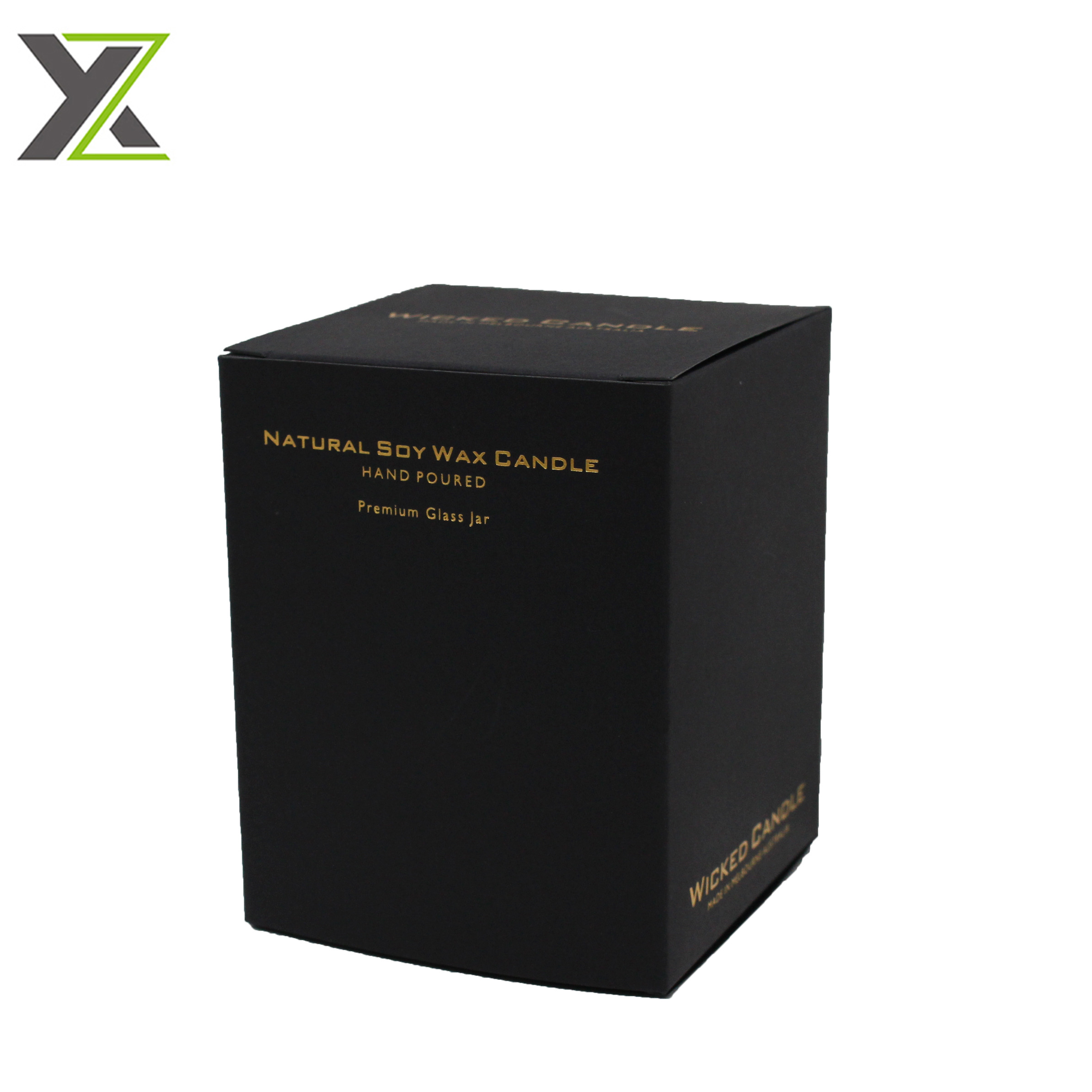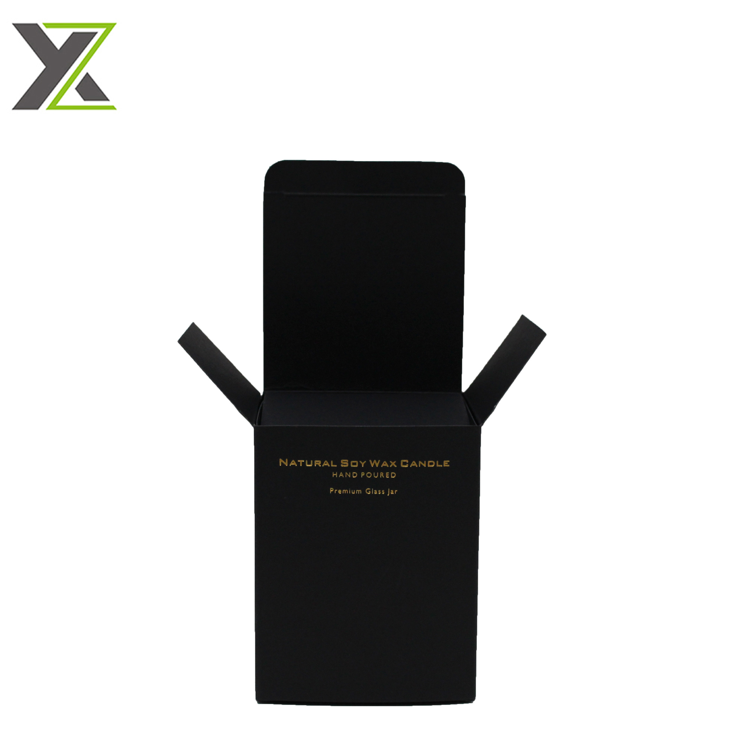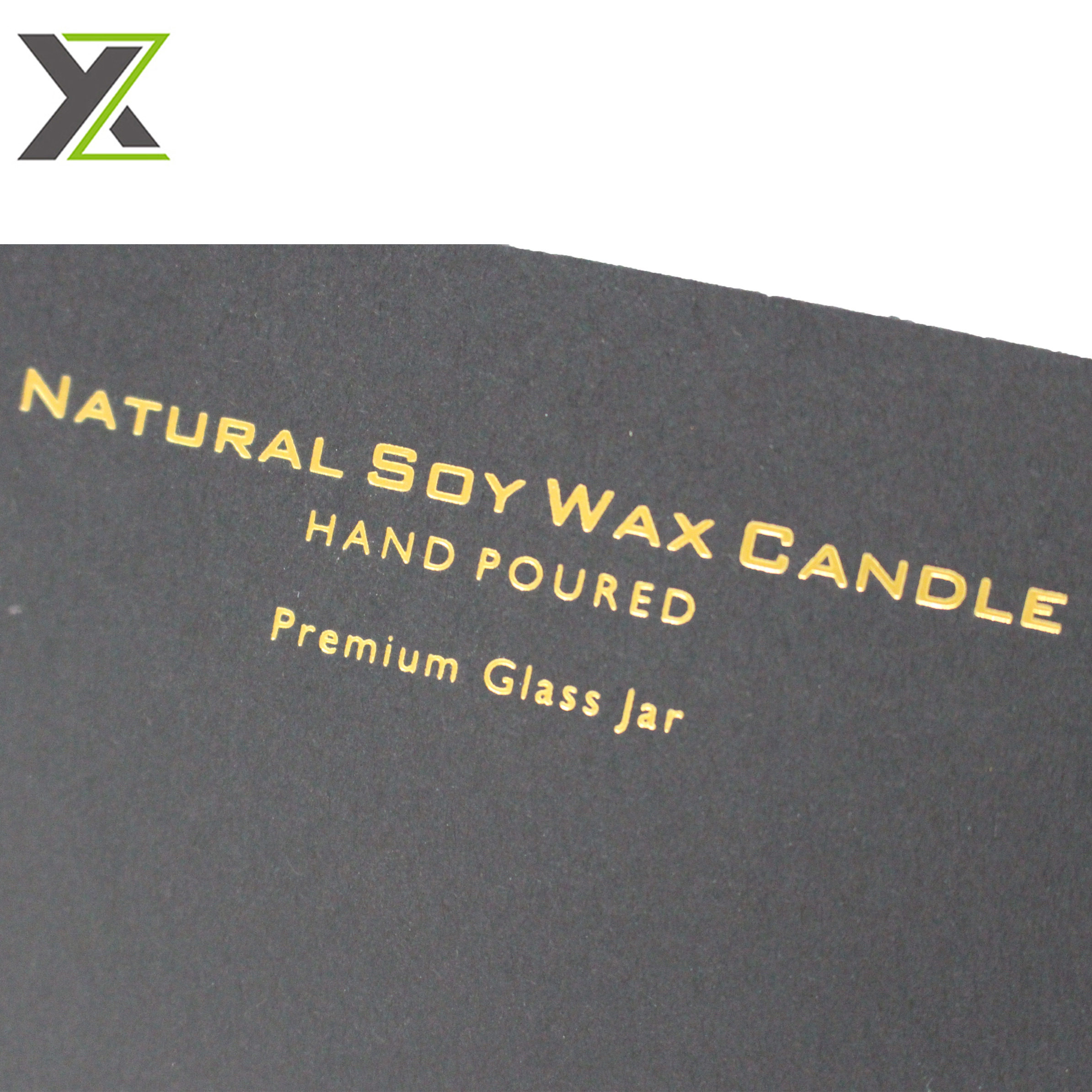 Fancy matte black card gold foil logo natural soy wax candle packaging boxes